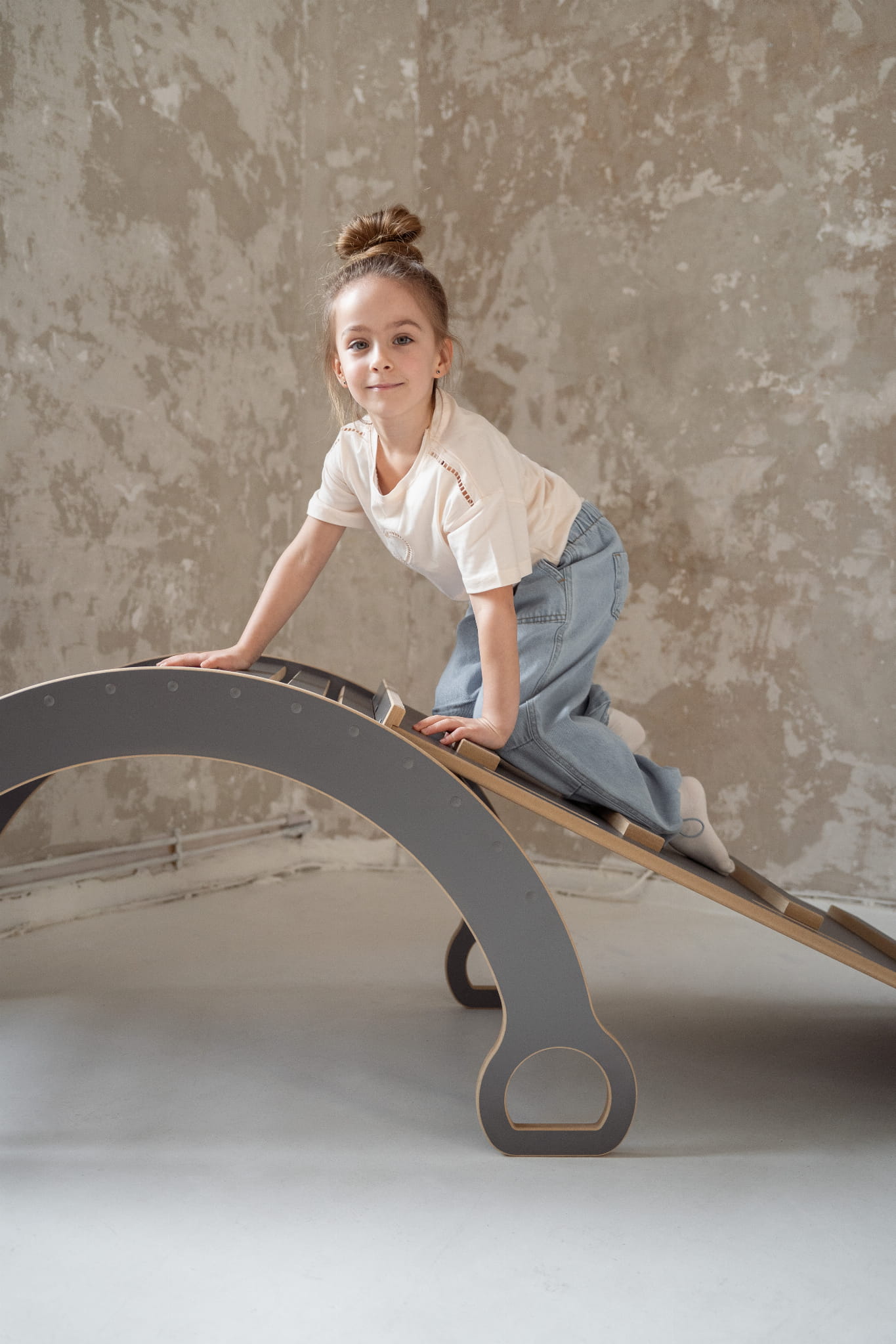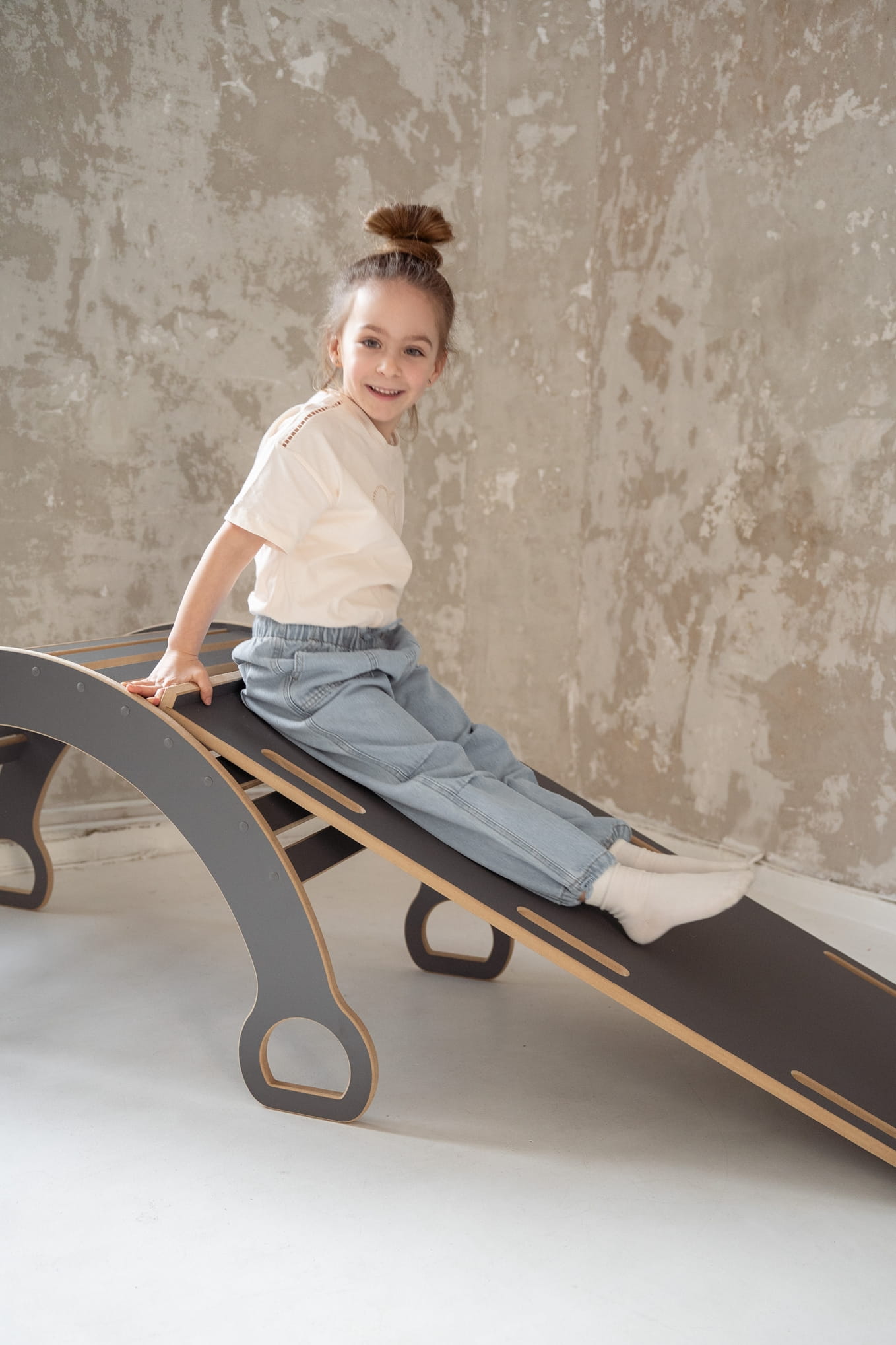Bujak ze zjeżdżalnią w domu, to plac zabaw IDEALNY! Z jednej strony płyty jest ścianka wspinaczkowa, a z drugiej superśliska zjeżdżalnia. Zjeżdżalnie można też położyć na bujaku i stworzyć RÓWNOWAŻNIĘ - polecamy do tego bose stópki.