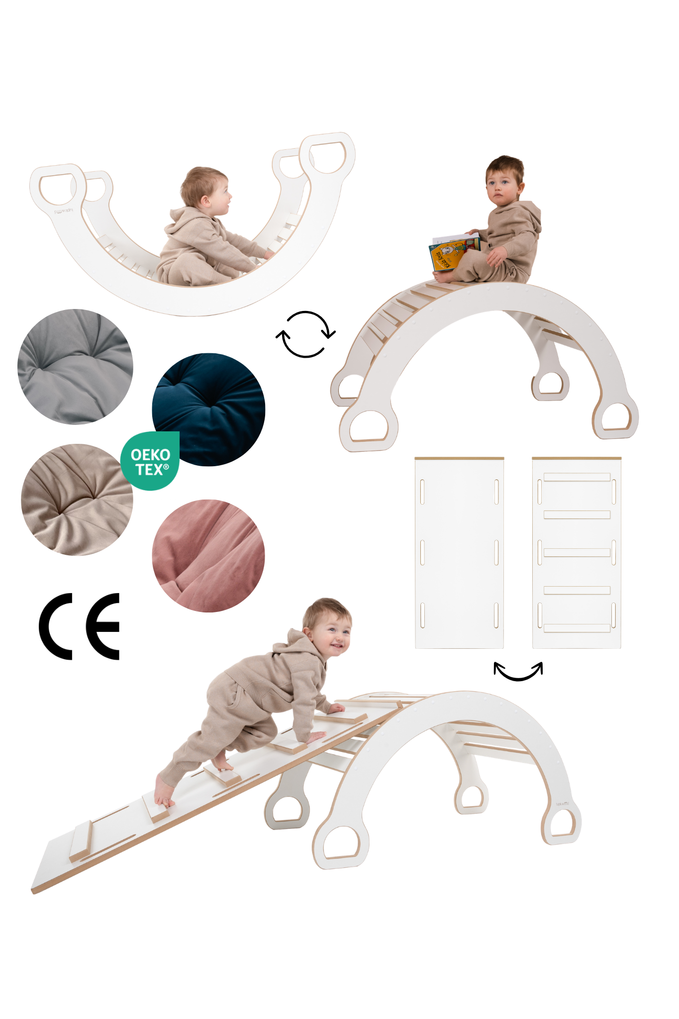Bujak można używać w dwóch konfiguracjach. W wersji do bujania, czyli płozami skierowanymi ku górze i oddać się błogiemu lenistwu. Bujanie jest idealnym sposobem na wyciszenie, obniżenie stresu, relaks. Można go również postawić - co pozwala na szaleństwo! Wspinanie się, tworzenie bazy, lada sklepowa, wyścigi samochodów, tunel... Co oznacza, że jeden mebel jest miejscem i do odpoczynku, i do zabaw!